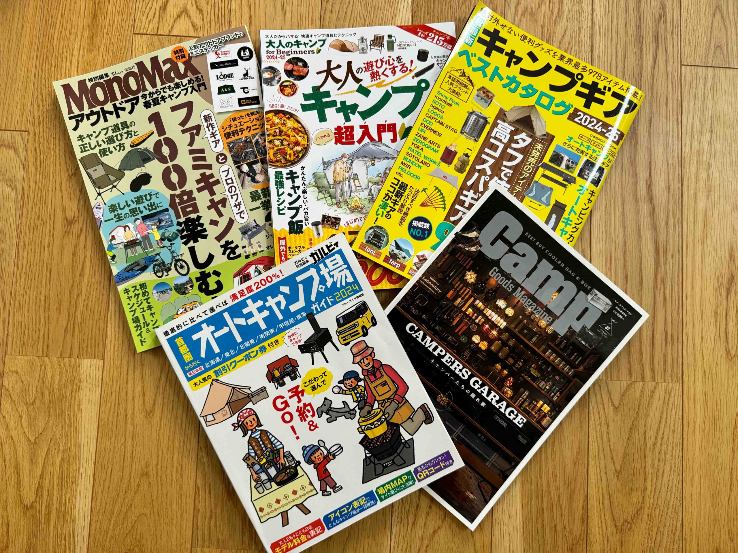 雑誌も色々な種類があるのですね。どれも読んでいて楽しい!! 自分が楽しくキャンプをしている姿を妄想しながら読みました(笑)